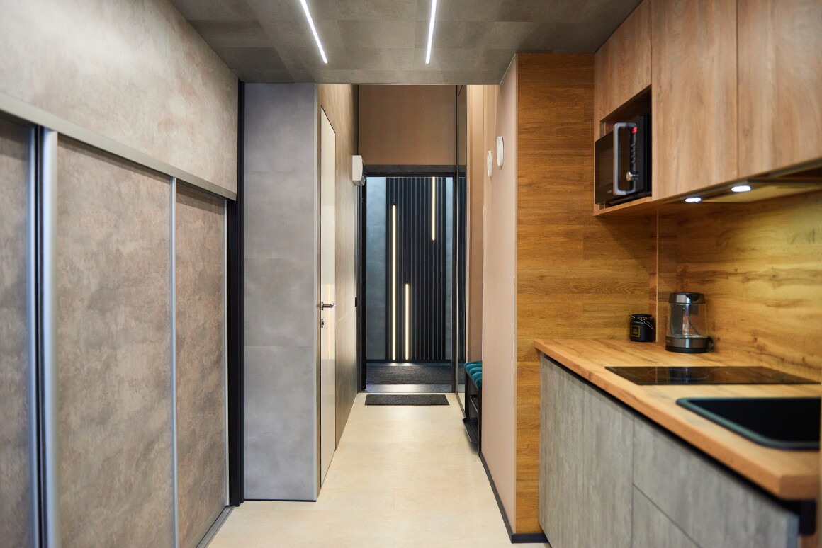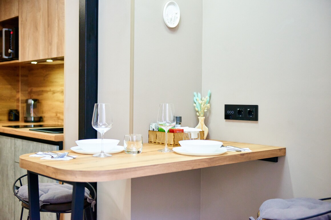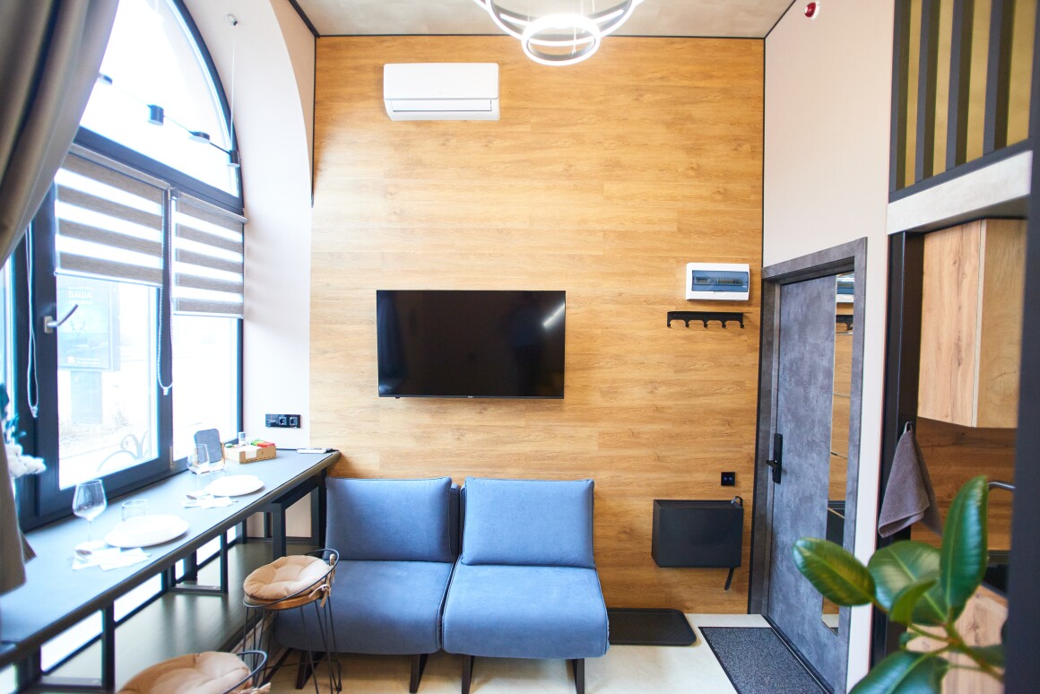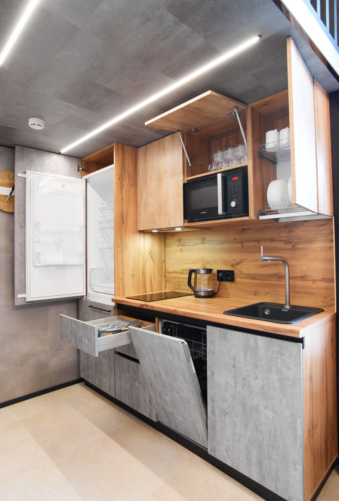 Полностью оборудованная кухня, гардероб, телевизор, Wi-Fi, ванная комната, фен, кондиционер,утюг, стиральная машина.