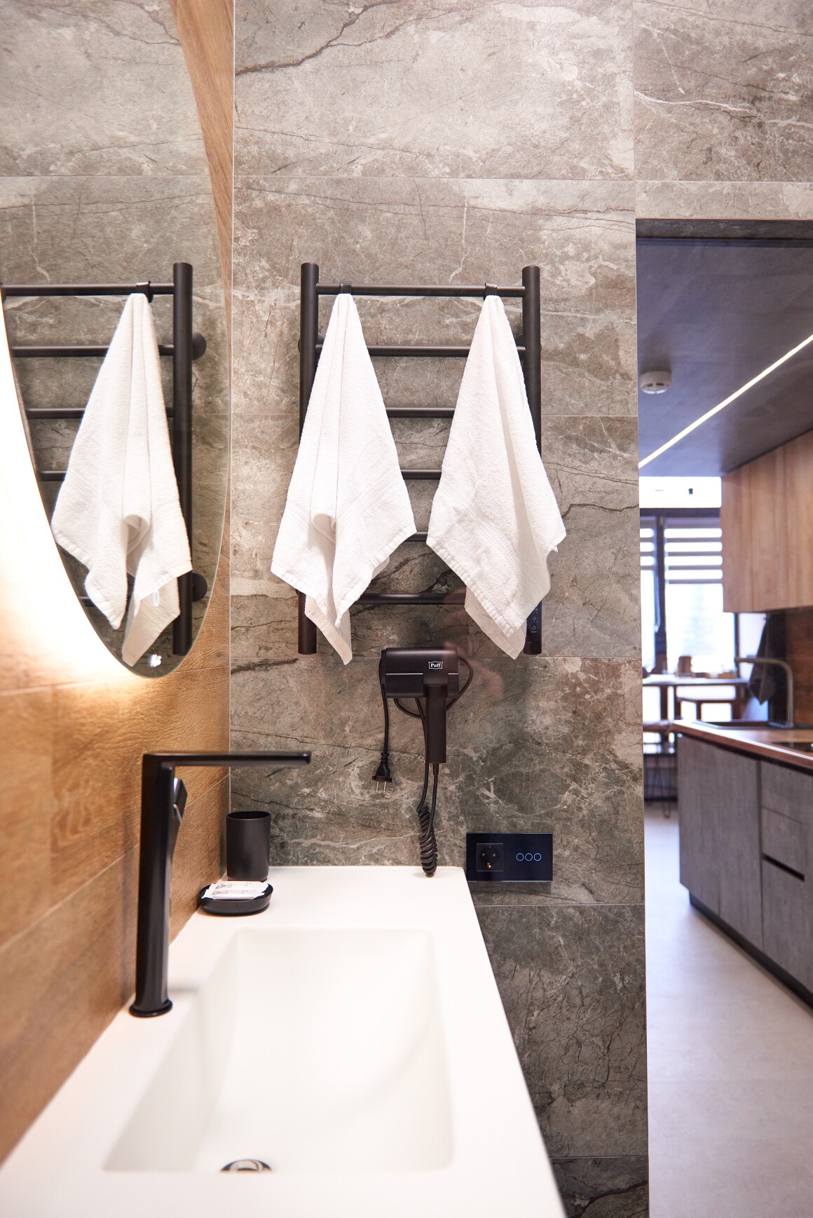 Полностью оборудованная кухня, гардероб, телевизор, Wi-Fi, ванная комната, фен, кондиционер, утюг, стиральная машина.